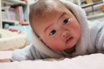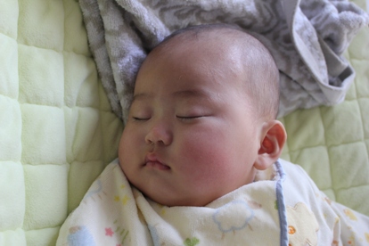 そろそろ寝がえりの練習が始まるかな(^。^)