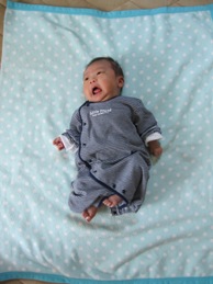 義父が抱いてもミルクをもらえるまでは泣きやみません。