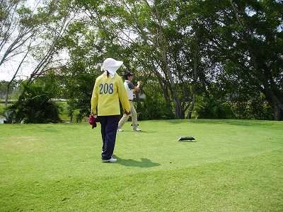 今日は先週行けなかったゴルフのリベンジに行くことになりました。朝6時から出発です。RAYONGから西へ40分のBanChangということころです。コースは日本では考えられないほどのアクロバティックなコースでした。いきなり川越えや池越えでフェアーウエイのど真ん中に木がいっぱいあるといった感じです。スコアは言うまでもなく最悪でした。15年前に会社の上司がホールインワンしたプレートもしっかり確認しました。ローマ字で書いてました。